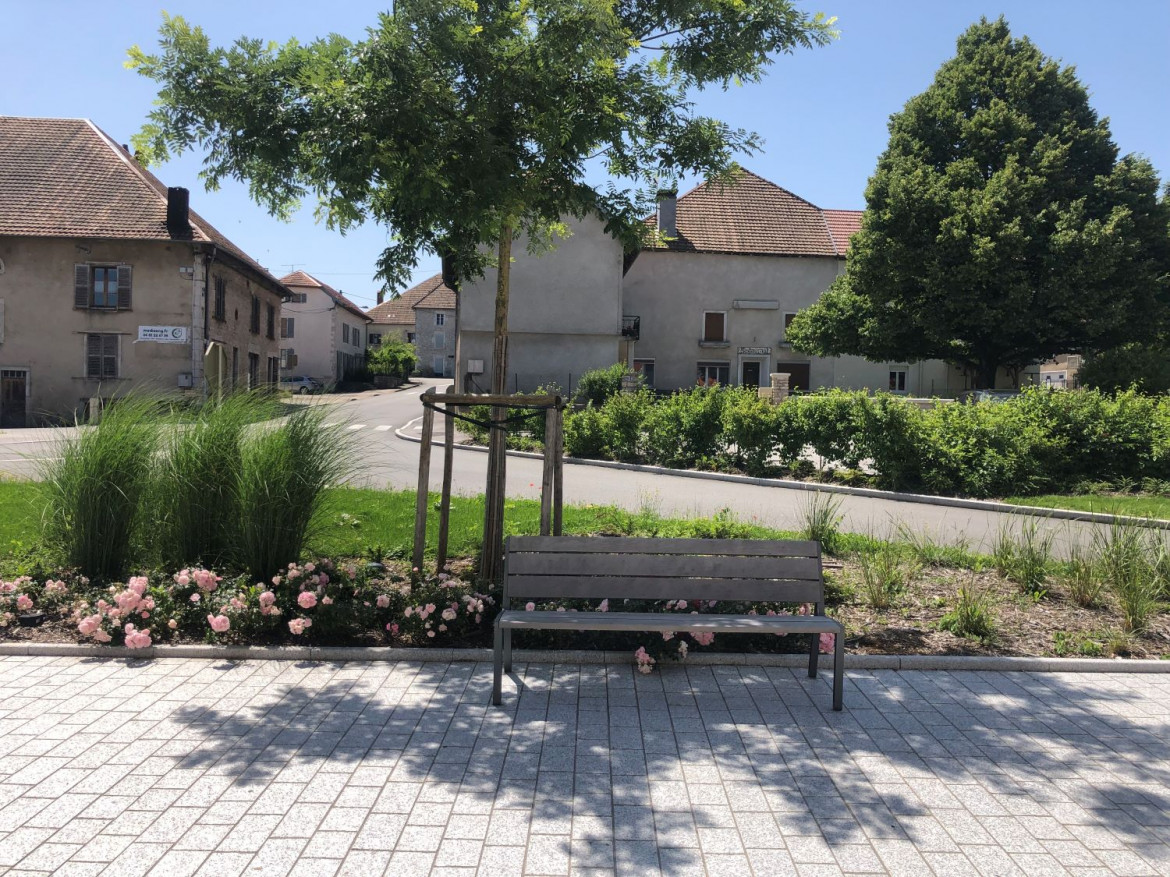 Le projet tisse des liens avec l’environnement par la création d’un parvis en pavé et l’aménagement des abords de la mairie.