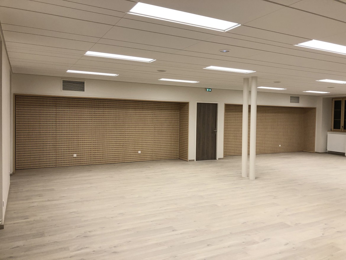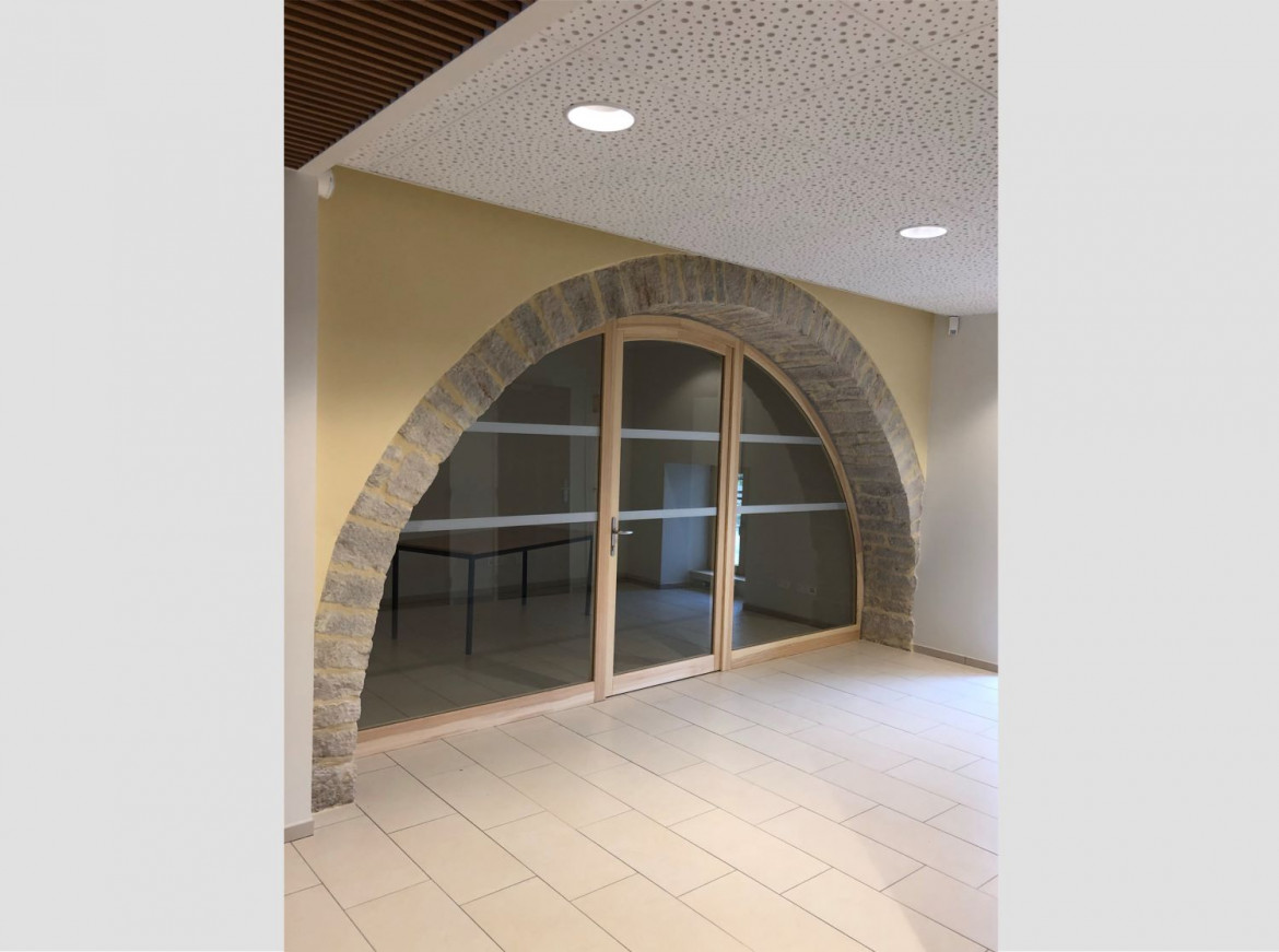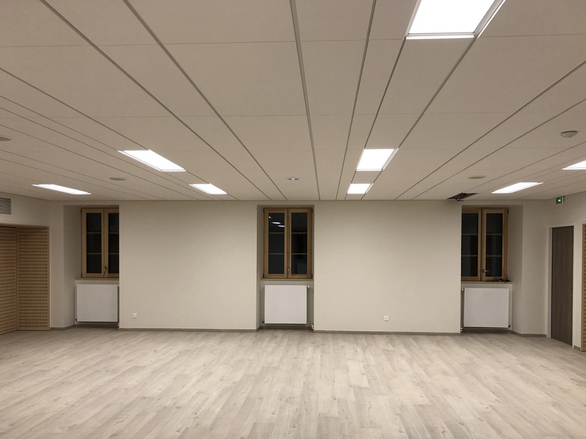 Le bâtiment réhabilité rend accessible la mairie, les espaces de réunions et les bureaux. Une grande salle a été conçue pour répondre aux différentes activités associatives de la commune et des environs.