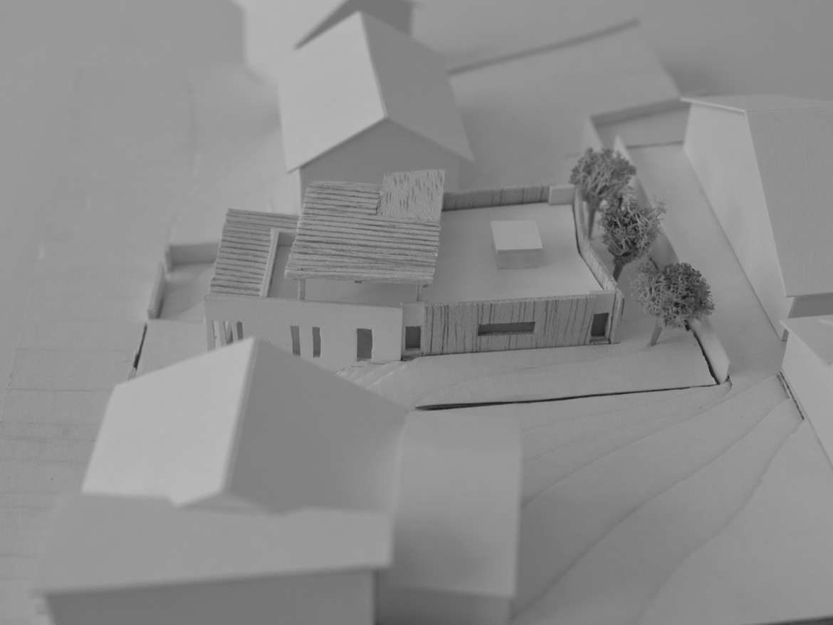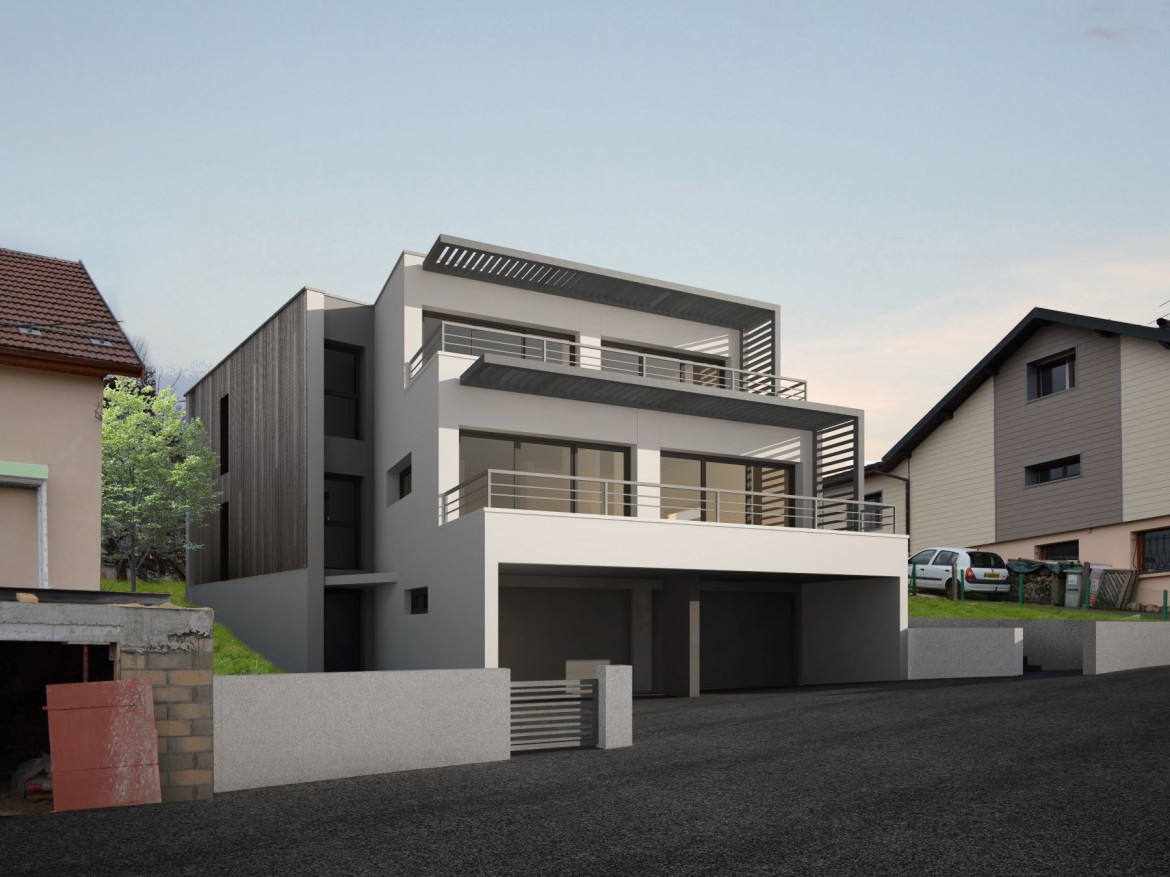 Construction d'une maison au pied de la Chapelle de l'Espérance aux points de vues cadrées et variées sur l'environnement : sur la Chapelle de l'espérance, le centre ville de Pontarlier, la plaine d'Arlier, et au milieu d'un cadre bâti existant.